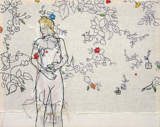 garen, textiel en acrylverf op doek