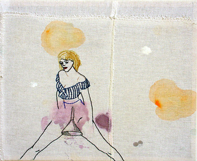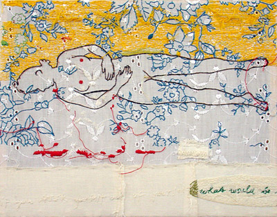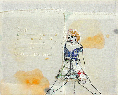 garen, textiel en acrylverf op doek