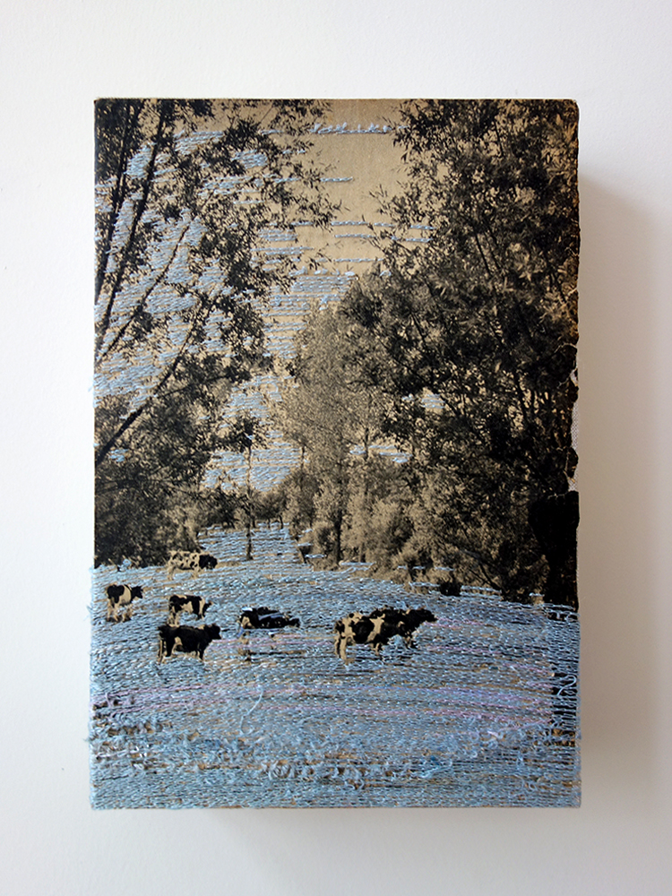thread on paper on linen