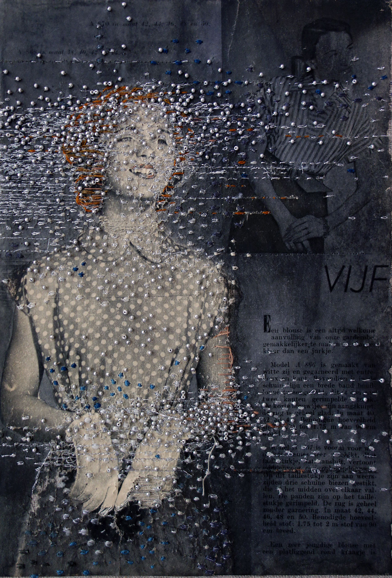 embroidery on paper on linen