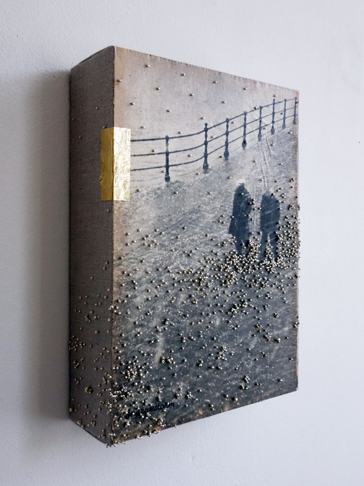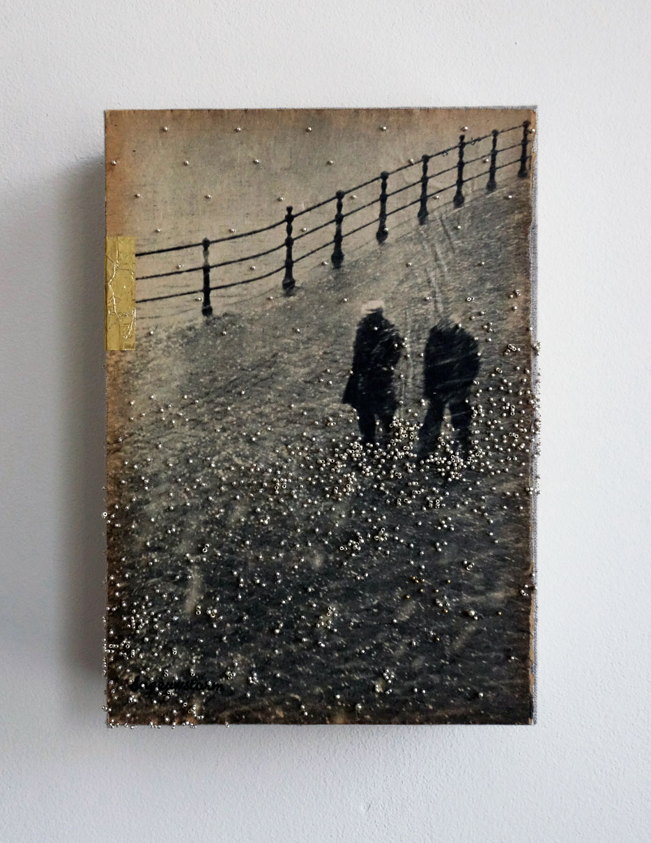 beads on paper on linen