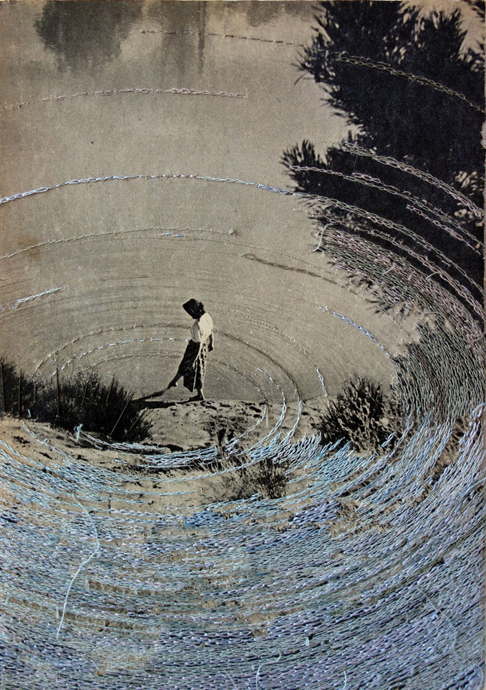 embroidery on paper on linen